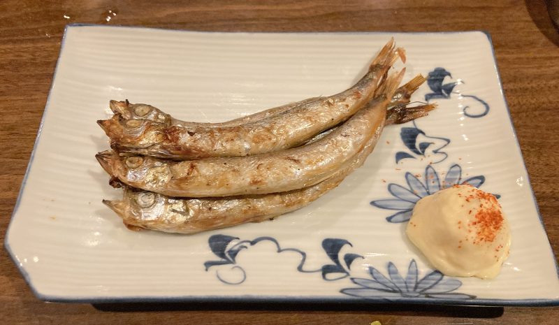 子持ちししゃもは、ぷちぷちとした卵の食感がいい。香ばしく焼かれてお酒の肴にぴったり。