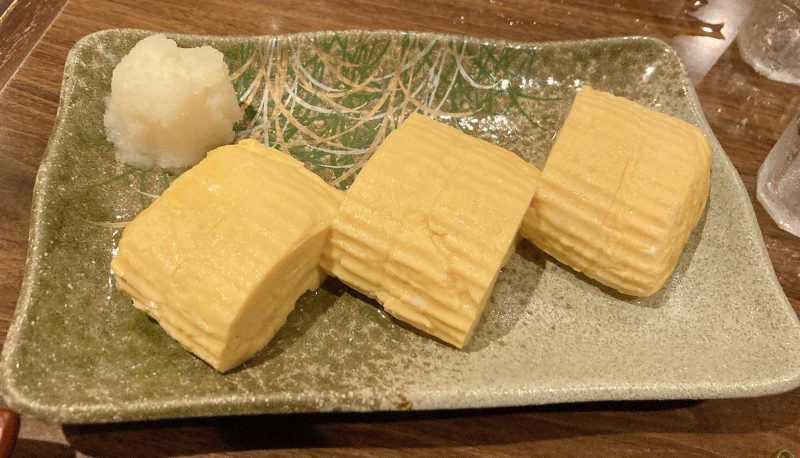 ふっくら厚みのあるだし巻き玉子は、優しい甘さでホッとするとする味でした。