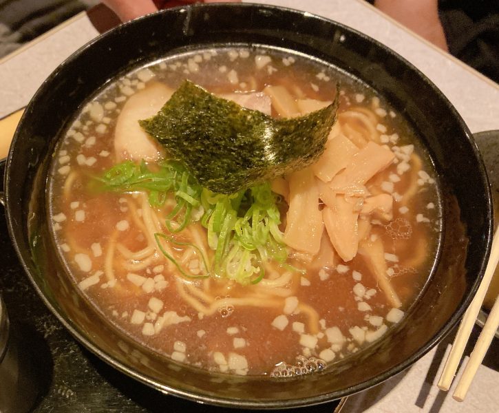 ネギ、チャーシュー、メンマ、のり、卵がはいってます。