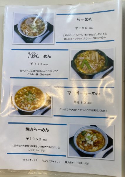 【酒田市・らーめんハウス八珍】喫茶店のような酒田の町中華を堪能!メニューも公開