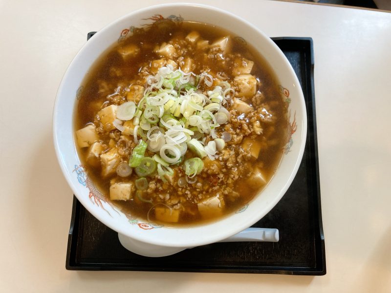 スープの上にとろりとした麻婆豆腐がたっぷり、マーボーらーめん。