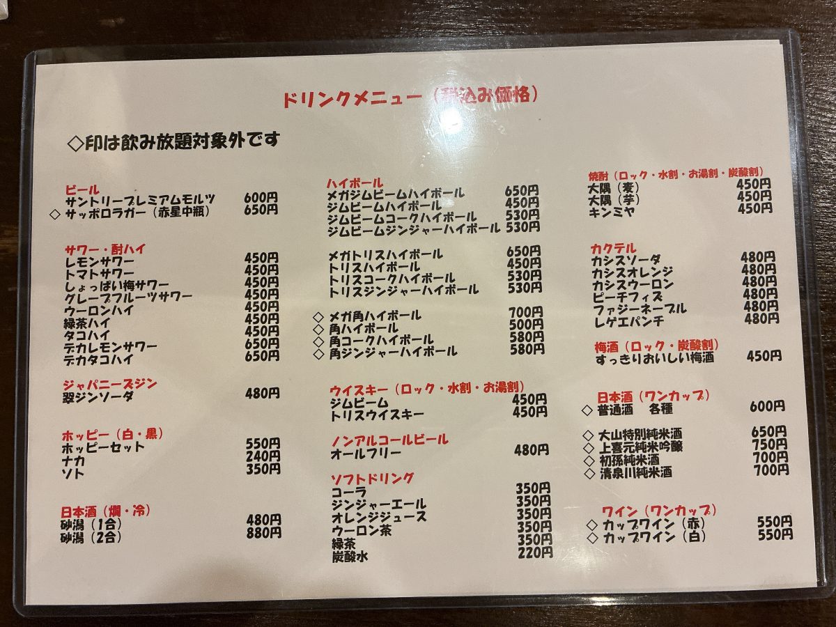 | メガトリスハイボール | 650円 |