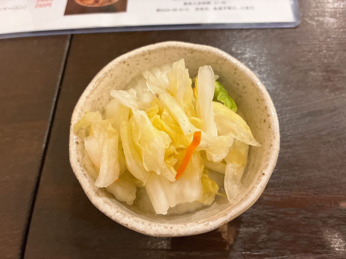 ほんのり甘みのある優しい漬け加減で、串焼きの合間にぴったりの白菜漬け。