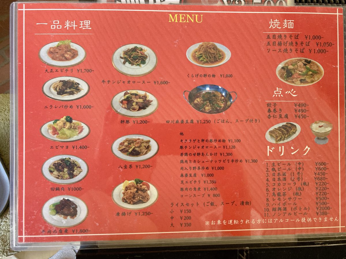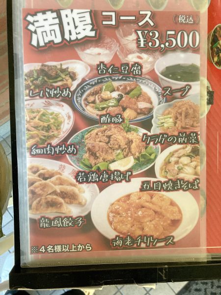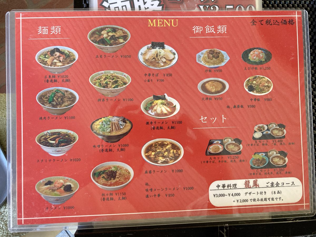 龍鳳のメニュー表