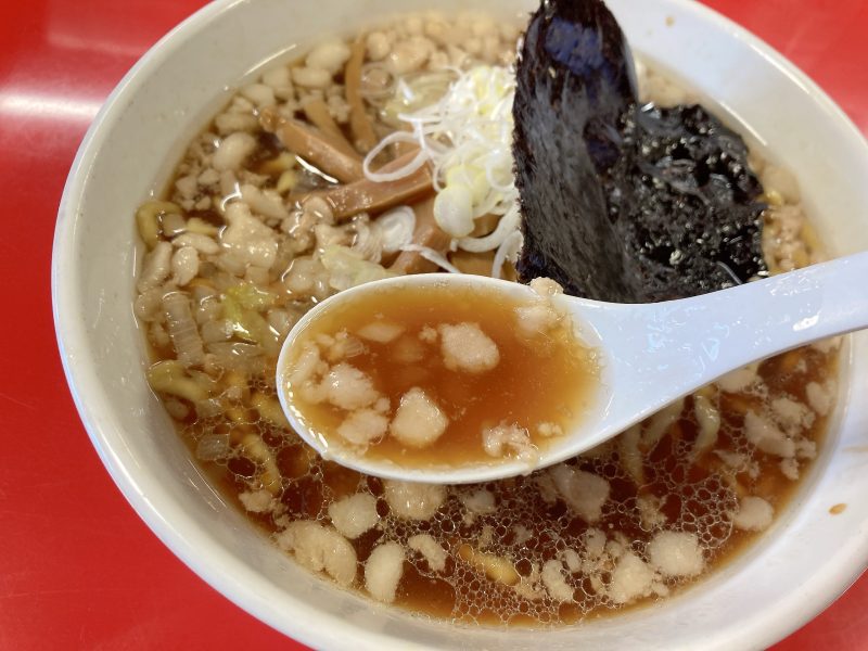 背脂がしっかり浮いていてラーメンの旨味アップ。