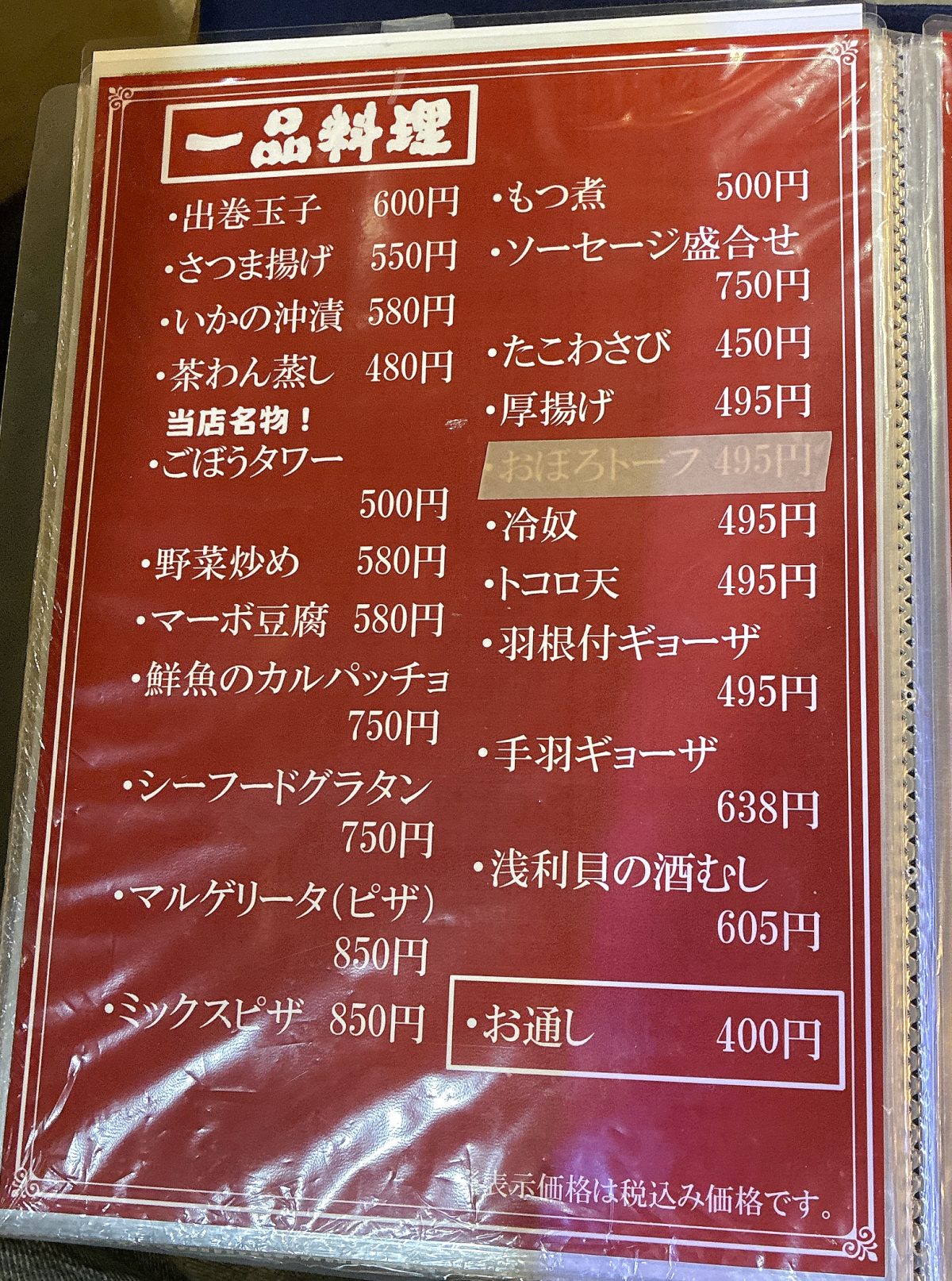 焼き鳥はもちろん、居酒屋らしい一品料理が豊富で、