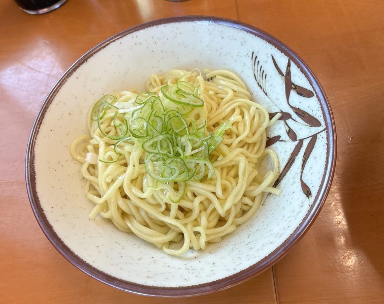 替え玉にはネギがトッピングされていて、ほんのり温かいのでスープに入れても味を壊さない。博多の替え玉制度を酒田で体験してみてるみたい。